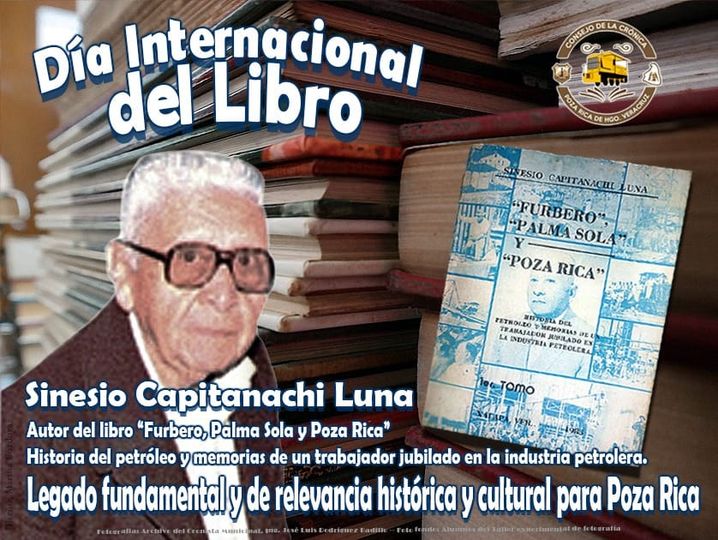 Hoy, 23 de abril, Día Internacional del Libro, instaurado por la UNESCO para fomentar la lectura, la industria editorial y la protección de la propiedad intelectual por medio del derecho de autor, el Consejo de la Crónica de Poza Rica Ver. rinde homenaje a Don Sinesio Capitanachi Luna, quien nació el 12 de diciembre de 1907 en la comunidad de San Pablo, hoy municipio de Papantla, quien fuera trabajador fundador del campo petrolero de Poza Rica, sitio al que llegó en los días previos al traslado del personal de la compañía “El Águila”: de la exhacienda Palma Sola, al kilómetro 56 de la vía Cobos-Furbero, -hoy Poza Rica- en 1932, para instalar el sistema telefónico, que enlazaría a la compañía inglesa con sus oficinas en todo el país.