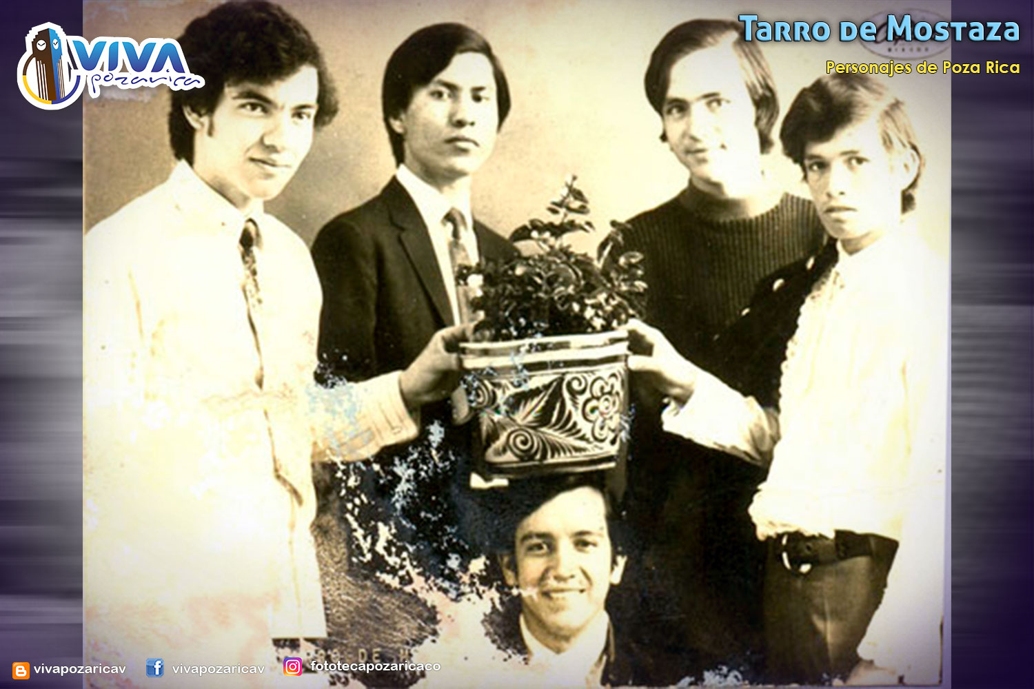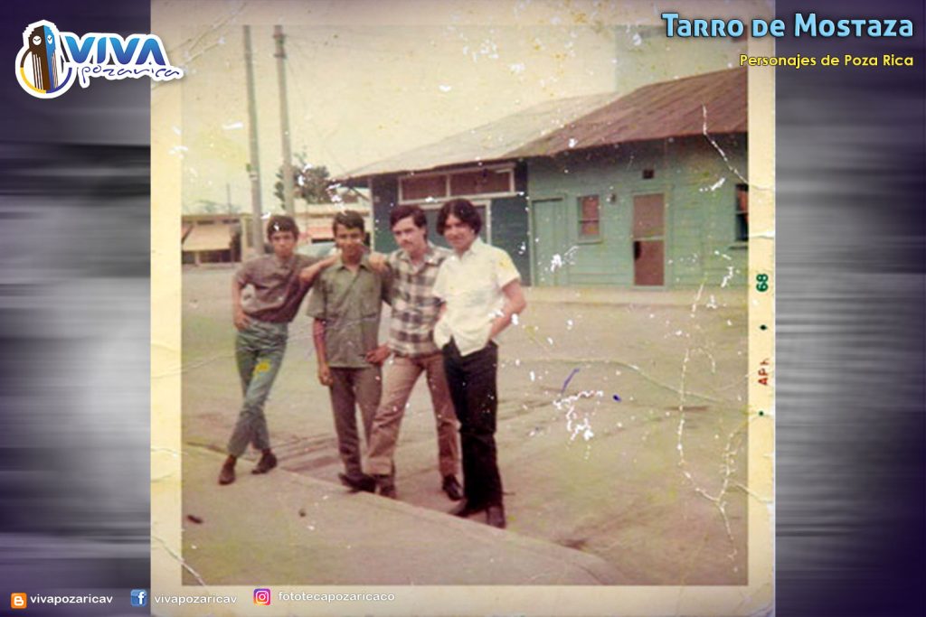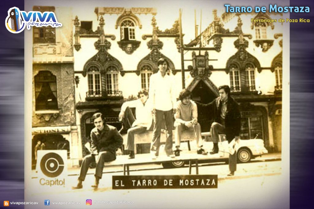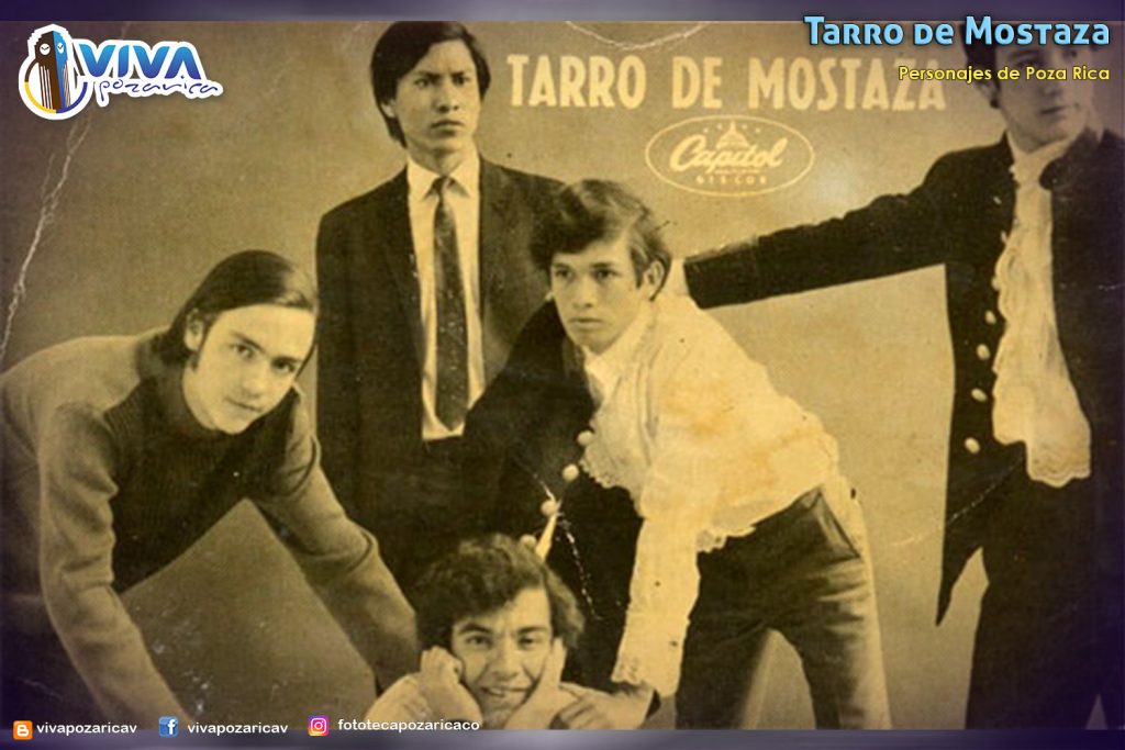 Fotografía del grupo Tarro de mostaza tomada en el año 1968, en la cual aparecen los integrantes de izquierda a derecha Oscar García Casados, Fernando Hickman Lupi, Santiago Galván Díaz y Jorge López Martínez. Originalemente llamado grupo The Sounds