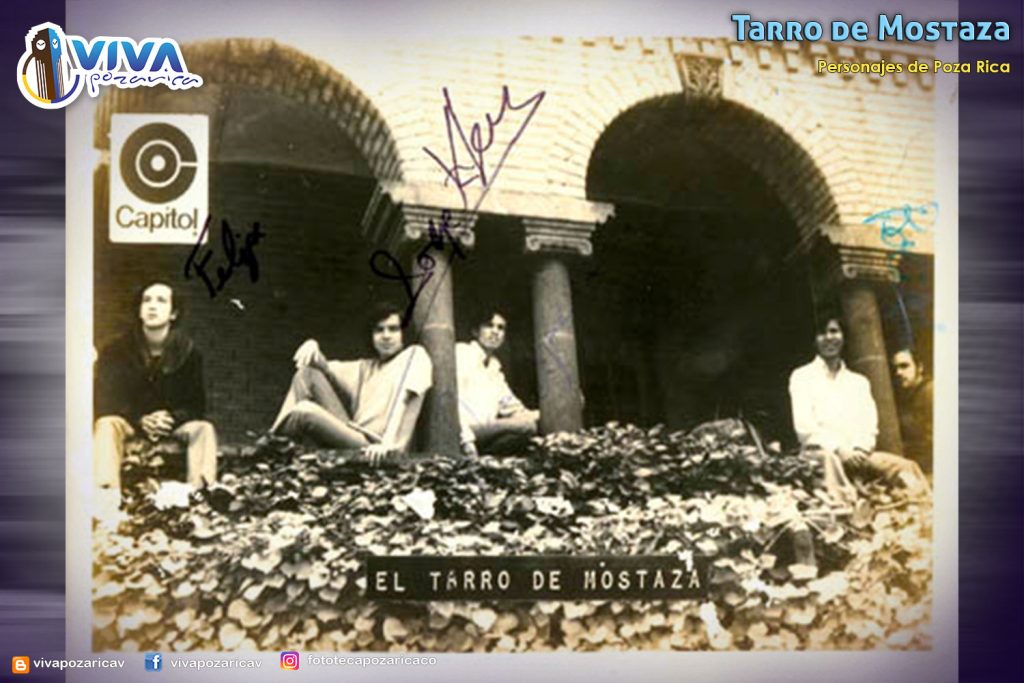 tarro_capitol.jpg : Fotografía del grupo Tarro de mostaza tomada en el año 1968, en la cual aparecen los integrantes de izquierda a derecha: Santiago Galván (El Bolillo), Francisco del Ángel (El Indio), Oscar García (El Noix) Felipe Castro (Pipi) y Jorge López